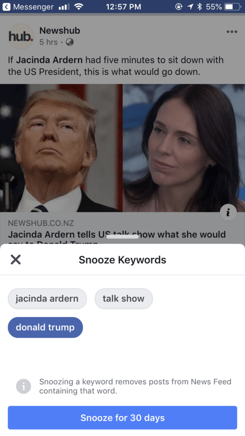 π« You canβt select or write the keyword you want snoozed. You have to use facebooks selection on posts that allow it.