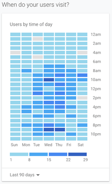 This report will help you see when your audience is likely to be visiting your website, which can help with decisions on when to post on social media.
