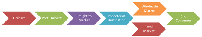 Simply put, it means the journey your produce takes from your orchard to the end consumer. Each part of the supply is a link (chain) to getting your produce from orchard to end consumer in the correct specification, at the right price within the right time frame.