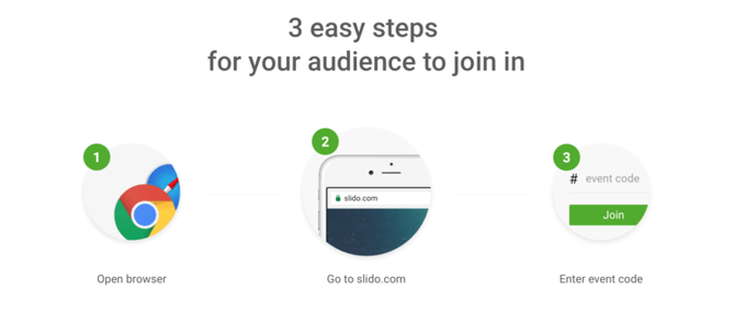 A screenshot from Sli.do showcasing just how easy it is for audiences to join in from their phone. No apps required.