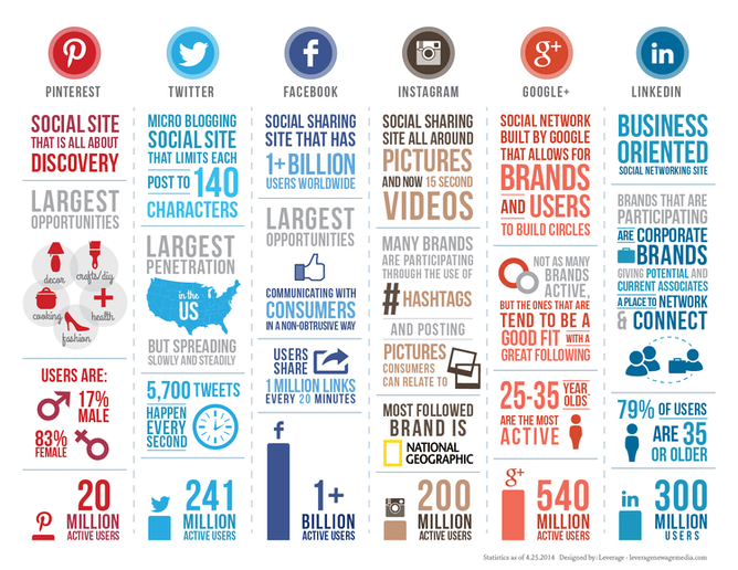 We often work with people and companies to help decide what types of social media would match their brand, business or personality. These statistics are from 2014 but it's a fantastic generalisation so show what type of social media would be suitable for you.
