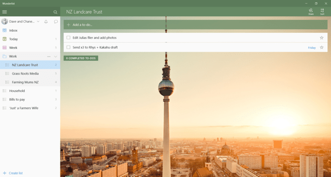 This app is downloadable across PC, Apple and Android and is free. It attaches itself to an email address of your choice and synchronises between devices in real time AND it emails you when you have a task due! You can also collaborate with others by sharing your lists, print them or use as a shopping list.