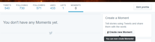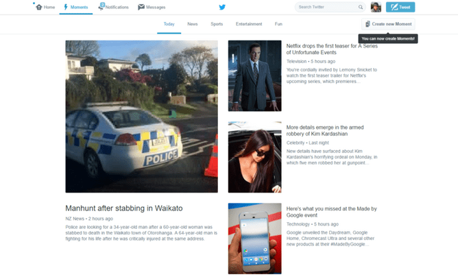 Twitter and selected partners able to gather and store stories on a range of topics, including News, Sports, and Entertainment. Then, in August 2016, Twitter opened Moments up to a broader group of influencers and creators, before beginning the public roll-out of the feature on September 28th 2016.